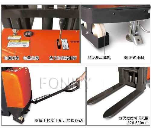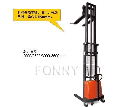 • 具有装卸和短距离运输货物功能的两用半电动堆高车;